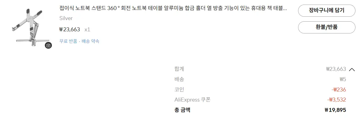 제품명은 특별한 모델명 없이 “노트북 스탠드 360도 회전”입니다.
